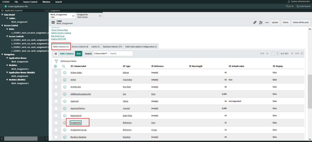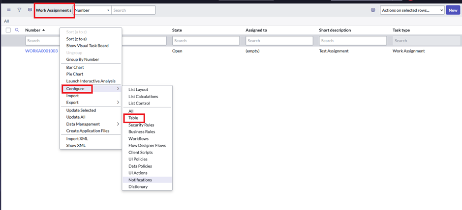 • Now GOTO è module  work_assignment è Configureè Table