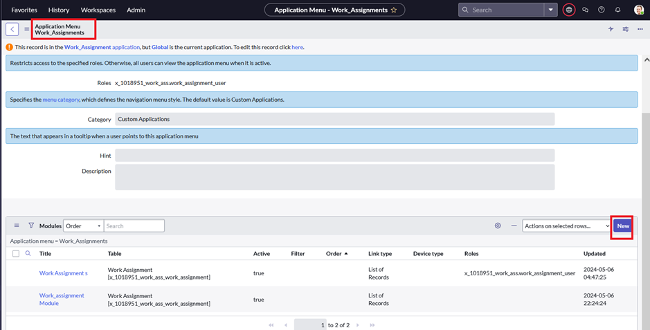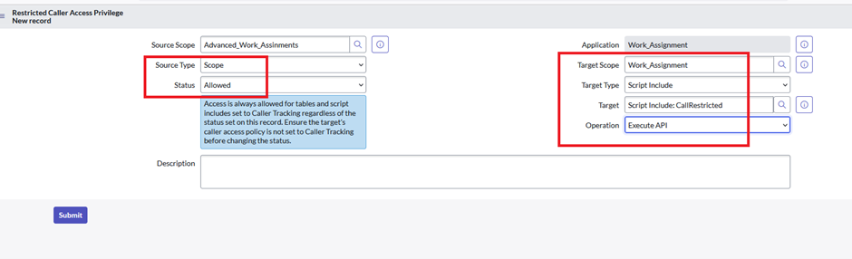 Application -work_assignment ,caller restricted Associable from=all application scope