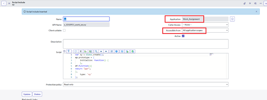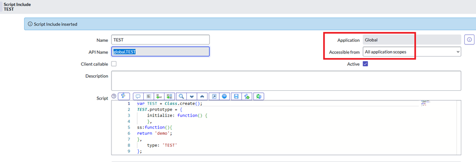 Create script include in Global application