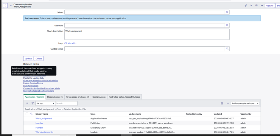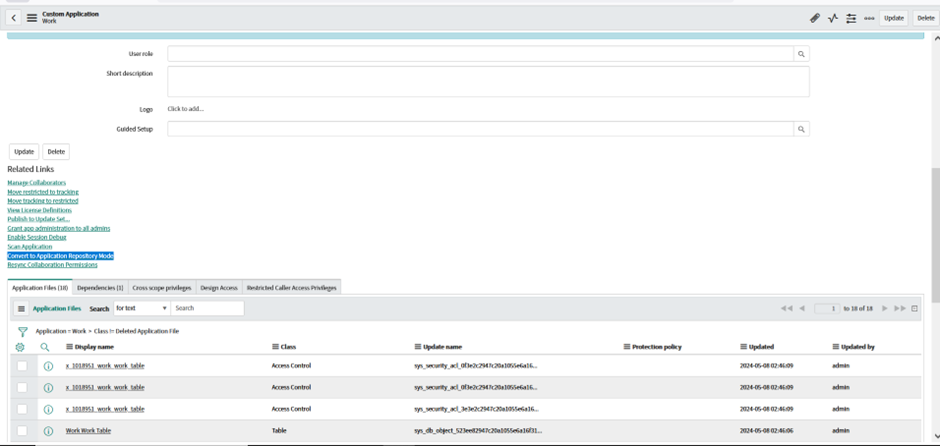 When your applications are placed in the Custom Applications table [sys_app], you can’t upgrade them directly through the Application Repository. This procedure helps you do a one-time conversion when you want to migrate deploying your applications using the Application Repository.