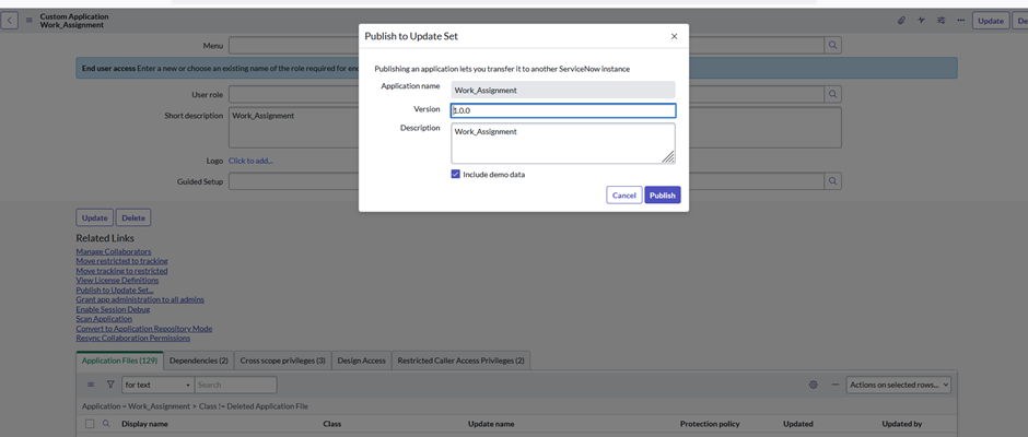 1. Publish to Update Set