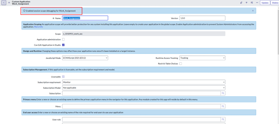 custom scoped application in servicenow