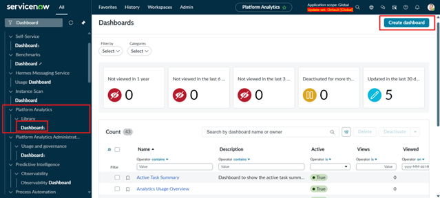 Heading to All -> Platform Analytics -> Library -> Dashboards