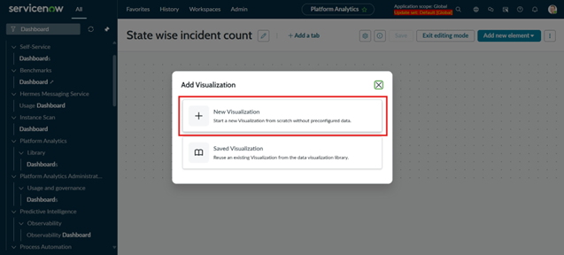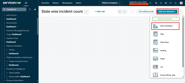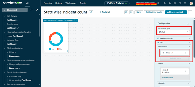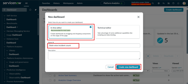 Select -> In-line Editor, Give Name -> State Wise Incident Count, Create Dashboard