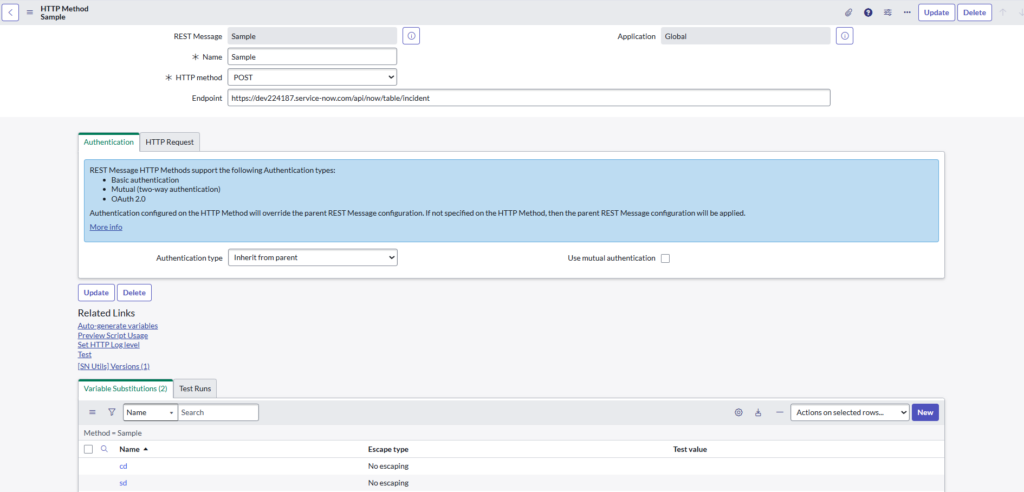 var r = new sn_ws.RESTMessageV2(‘Sample’‘Test’);