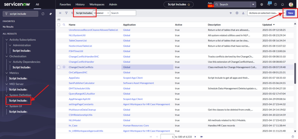 Navigate to ALL > System Definition > Script Include > New
