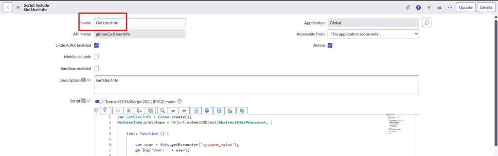 Give a name to Script Include as below: