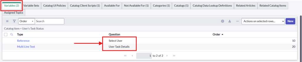 Fill the required details like Type, Catalog item, Variable Name and UI Type as below: